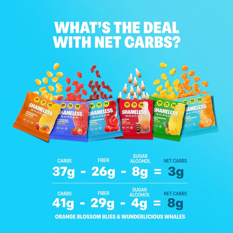 Shameless Snacks Candy Carnival - Healthy Low Sugar Snacks with Pineapple, Mango, Orange, Strawberry & Cola Gummies - Vegan, Gluten-Free, Low-Calorie Candy Variety Pack