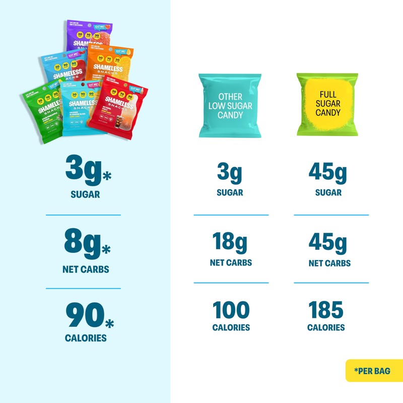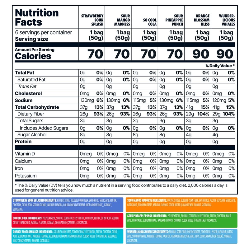 - Low Sugar, High Satisfaction: With only 3g of sugar and 8g of net carbs per bag, these snacks are a healthier option without sacrificing flavor. Enjoy guilt-free indulgence while savoring tropical favorites like Pineapple and Strawberry.