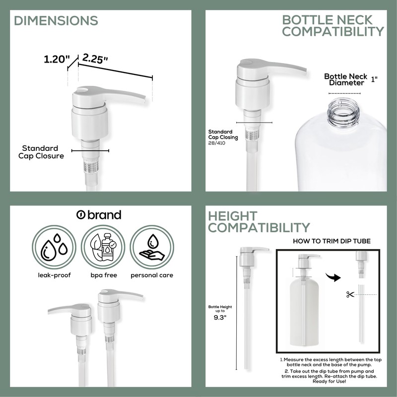 - 🧴Pump for 1 litter (33. 8 oz. ) bottles of shampoo, conditioner and lotion