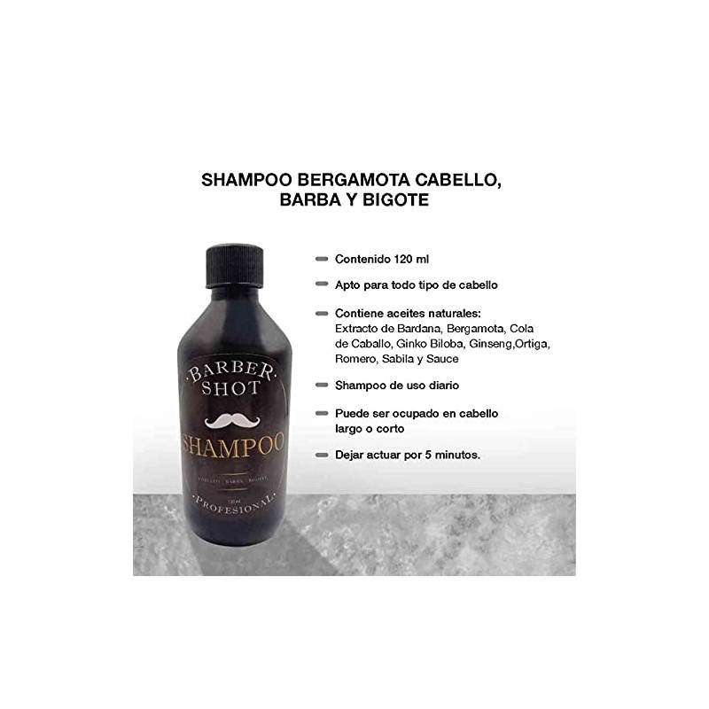 • Unisex Mejora el crecimiento y apariencia de tu barba y cabello con el Shampoo de Bergamota enriquecido con extractos naturales de romero, sábila, cola de caballo y aceite de coco, ingredientes conocidos por su acción fortificante, hidratante y revitalizante. Ideal para hombres y mujeres que buscan una solución efectiva para estimular el crecimiento capilar, fortalecer la fibra desde la raíz y mantener el vello facial o capilar limpio, suave y brillante. Este shampoo contiene bergamota, un potente antioxidante que mejora la circulación en el cuero cabelludo y ayuda a mantener la barba hidratada y con un aroma fresco. Además, apoya la regeneración celular y tiene propiedades antisépticas que ayudan a prevenir irritaciones o pequeñas lesiones causadas por el afeitado o el peinado diario. Modo de uso: Aplica sobre barba, bigote y cabello húmedo. Masajea suavemente de raíz a puntas, deja actuar por 5 minutos y enjuaga con abundante agua. Beneficios clave: ✔ Estimula el crecimiento de la barba y el cabello ✔ Fortalece desde la raíz gracias a la cola de caballo y romero ✔ Hidrata profundamente con sábila y aceite de coco ✔ Aroma agradable, brillo natural y barba más suave ✔ Uso unisex, ideal para rutina diaria Precauciones: No ingerir. En caso de contacto con los ojos, enjuagar con abundante agua. Suspender uso si se presenta irritación. Mantener fuera del alcance de los niños.