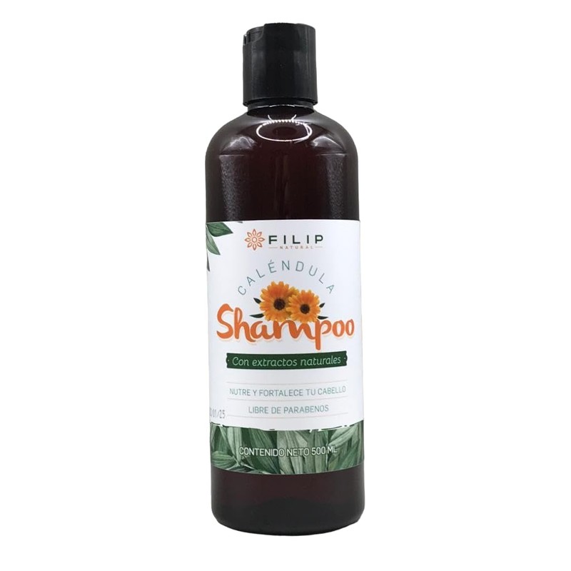 Ingredientes activos: Caléndula off. Auxiliar en: Caída del cabello. Limpieza profunda. Cabello maltratado Regula los excesos de grasa. Beneficios: Previene la caída del cabello por la acción regeneradora celular de la caléndula. Suavidad y flexibilidad natural. Cabello libre de suciedad con máxima protección. Mantiene el ph balanceado. Rico aroma frutal. Biodegradable. Con suavizante natural. Modo de empleo: Aplicar durante la ducha dando un suave masaje. Enjuagar y repetir la operación de ser necesario. Uso diario. Cuidado y conservación: Mantener el envase bien cerrado. Proteger el producto del calor intenso. No exponer el producto a los rayos del sol.
