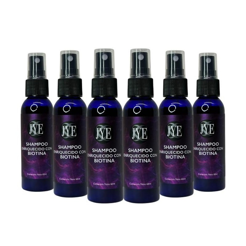 - Incluye 6 botellas de Shampoo orgánico enriquecido con Biotina JYE Contenido por botella: 60 mililitros