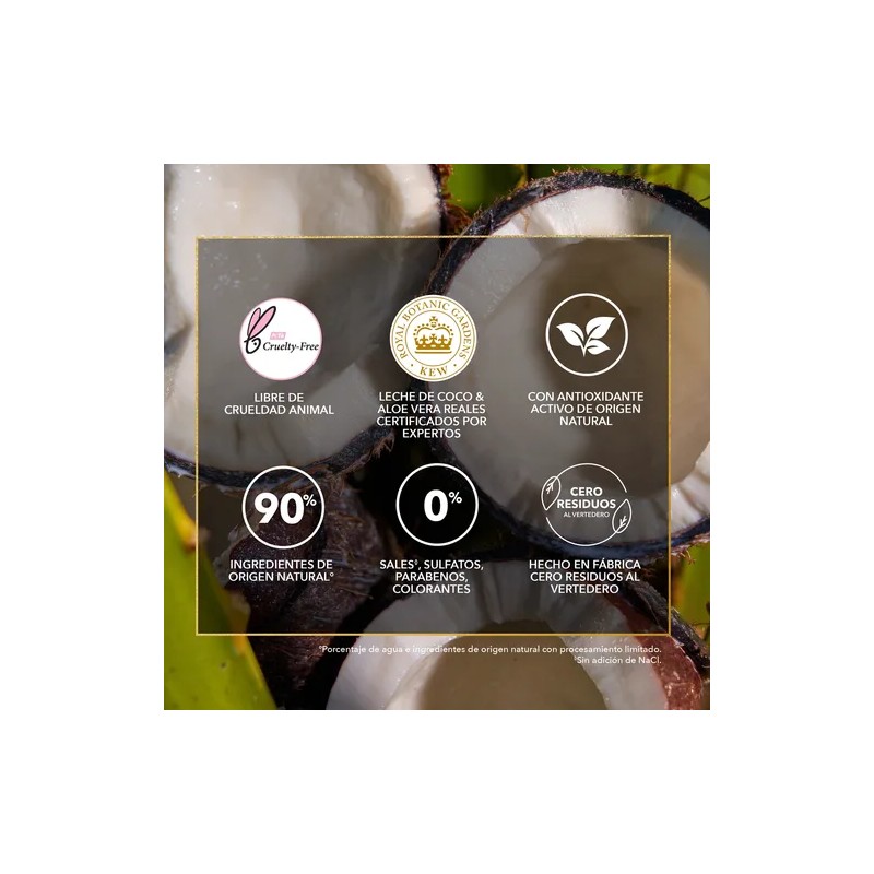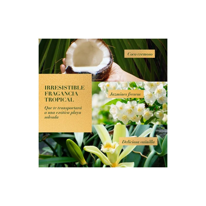 Destapa la fragancia del Shampoo Leche de Coco y déjate transportar al más exótico paraíso tropical sin siquiera salir de la ducha. Disfruta de un aroma de numerosas capas de coco cremoso, seguido de una melodía floral de jazmines envuelta por el confort de la deliciosa vainilla y deja que tus sentidos se vuelvan locos.