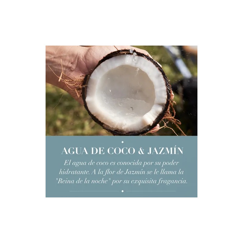 Transpórtate a un paraíso tropical con su deliciosa fragancia de coco cremoso, seguido de un ramo floral de jazmines y un toque cítrico.