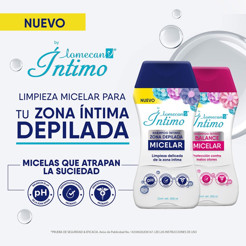Shampoo Íntimo by Lomecan V, BALANCE MICELAR, con Micelas que atraen las impurezas, protege de malos olores y balancea el pH con Ácido Láctico, dermatológicamente probado, botella 200 ml