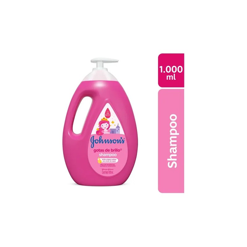 Shampoo Johnson's shampoo infantil Gotas de Brillo de aceite de argán en dosificador de 1000ML por 1 unidad