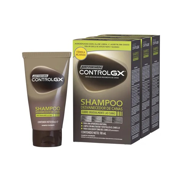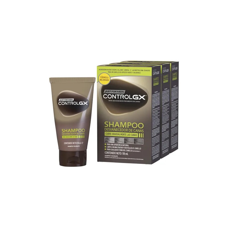 Shampoo Just for Men Control Gx, Desvanecedor Progresivo De Canas, Paquete de 3, 118ml