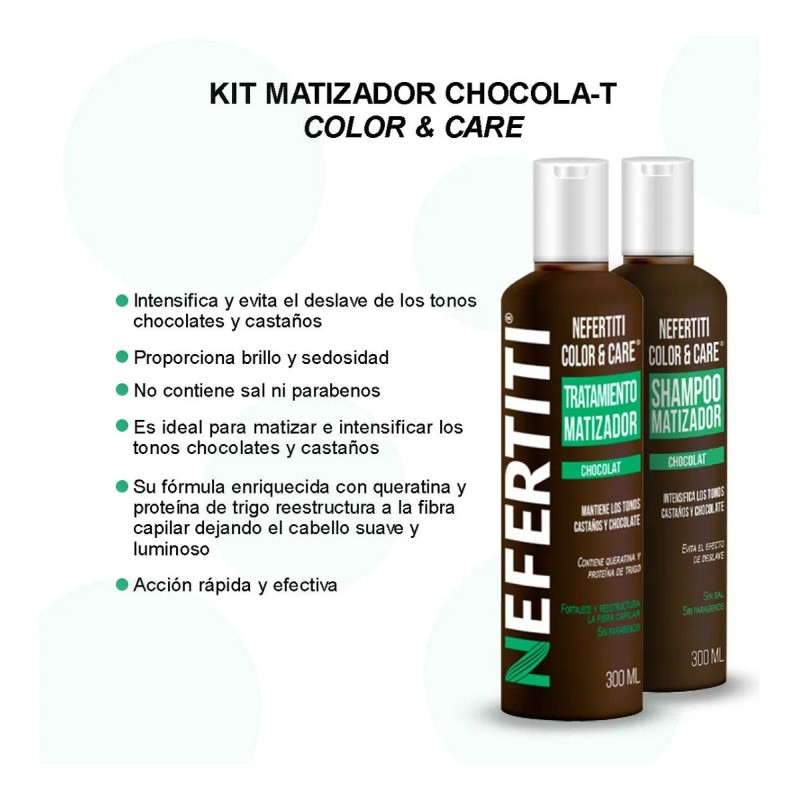 Shampoo y Tratamiento Matizador para Cabello Chocolate Nefertiti, Elimina Reflejos Deslavados, Fortalece con Keratina y Proteína de Trigo, Libre de Sales, Ideal para Tinte y Mechas