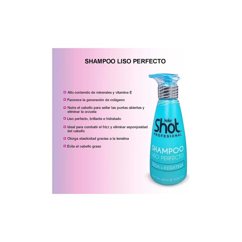 Shampoo liso con seda más keratina, es ideal para lucir un cabello hidratado desde la raíz hasta las puntas.