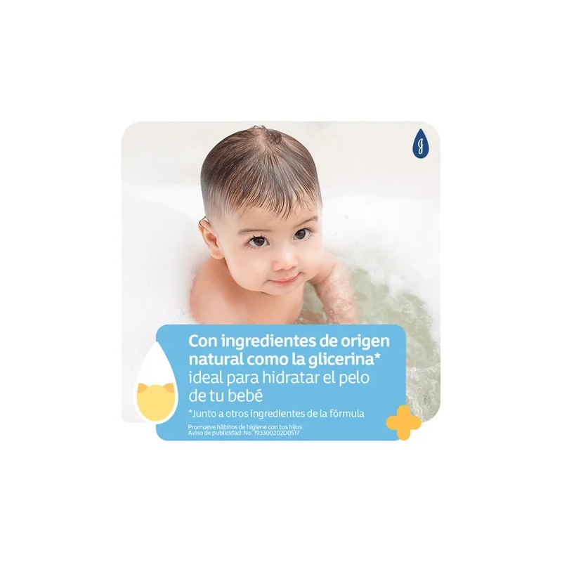 Shampoo Johnson's Original limpia suave y efectivamente el pelo del bebé, mientras protege su cuero cabelludo del resecamiento. Posee una fórmula tan suave para los ojos como el agua pura. Desarrollado con ingredientes de origen natural* como la glicerina vegetal, que ayudan a hidratar el pelo del bebé.