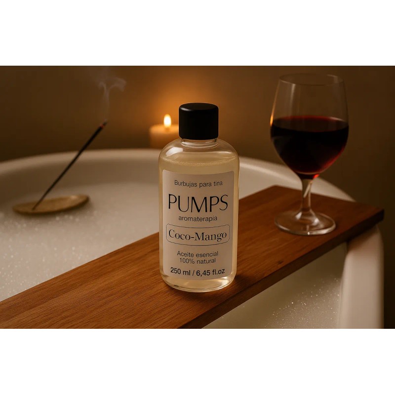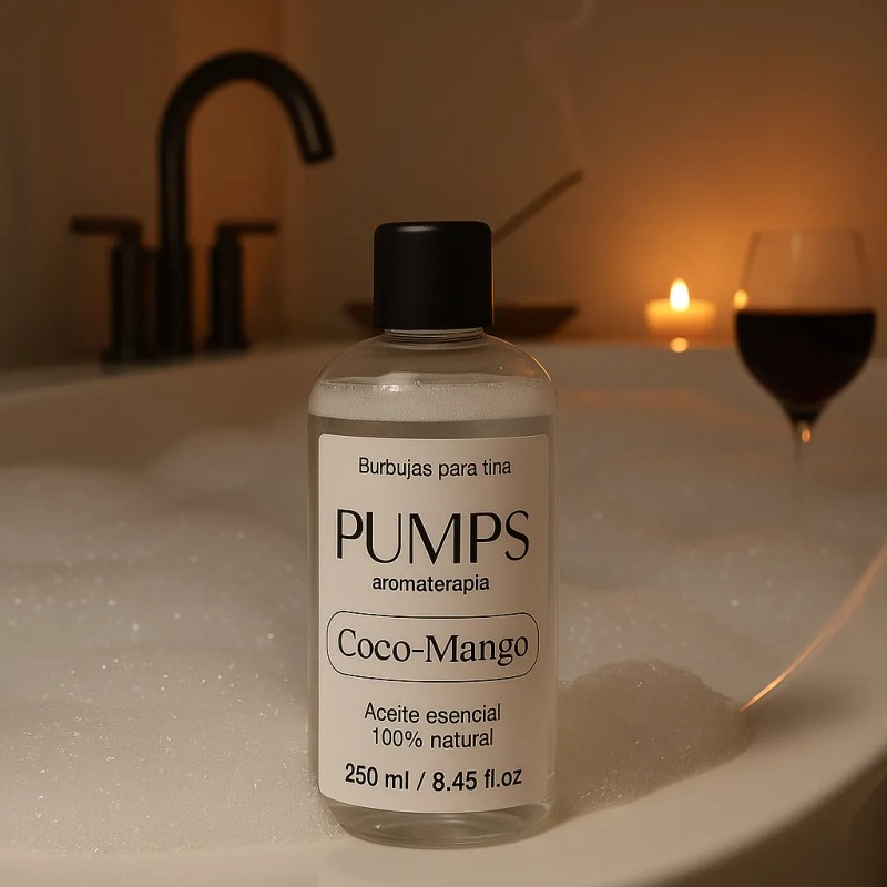 Sumérgete en una experiencia de relajación total con nuestras Burbujas para Tina PUMPS, elaboradas con ingredientes 100% naturales que cuidan tu piel y consienten tus sentidos.