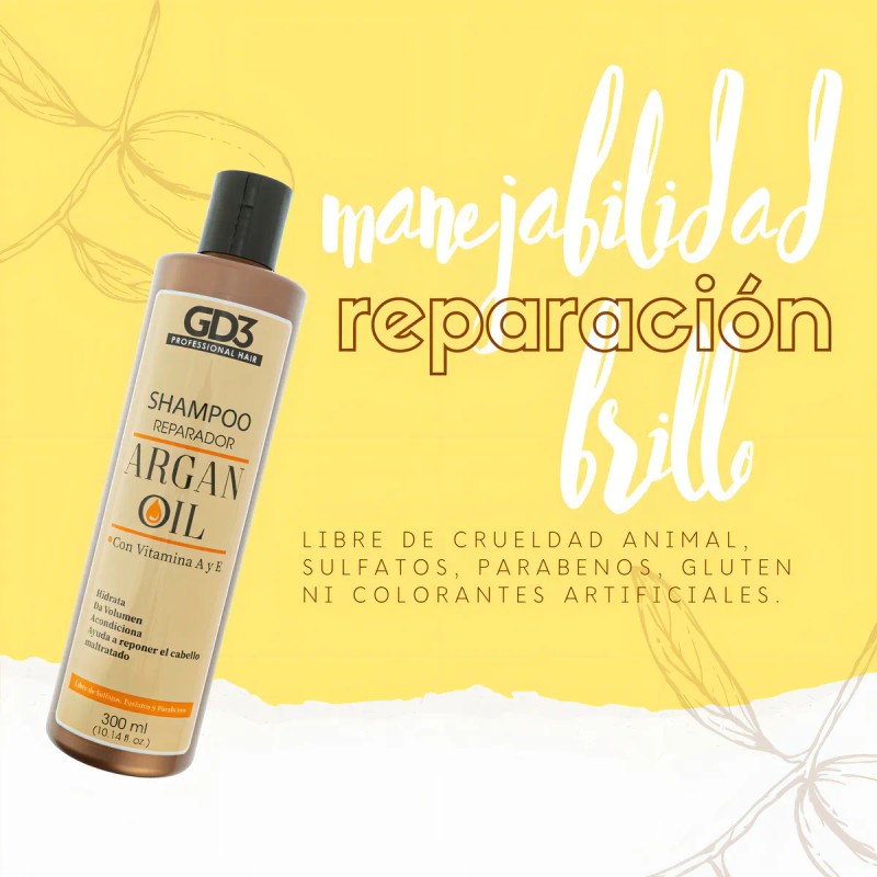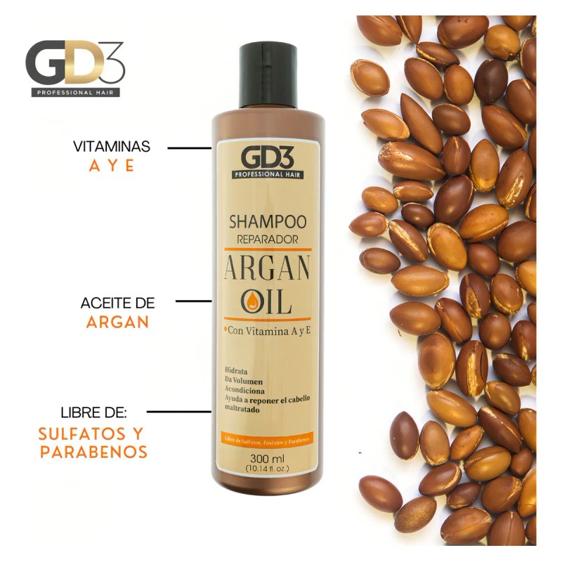 ✨ Shampoo Profesional GD3 Reparador: Renueva tu Cabello con la Magia del Argán ✨