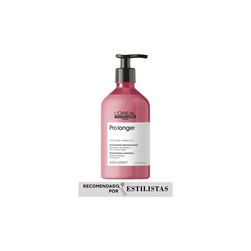 El Shampoo ProLonger de L'Oréal Professionnel está formulado con Filler A-100, una tecnología patentada que reconstruye la fibra capilar desde el interior, ideal para cabello largo, fino o con puntas abiertas.
