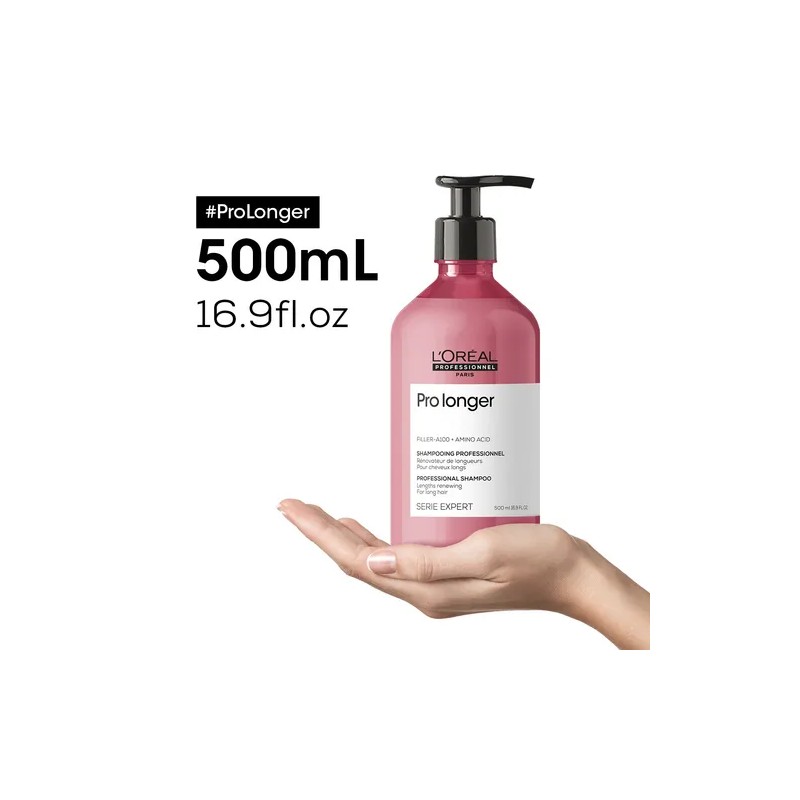 "Shampoo ProLonger L'Oréal Professionnel 500ml – Tecnología Filler A-100 | Fortalece Cabello Largo y Repara Puntas Abiertas | Sin Sulfatos – Para Cabello Frágil y Quebradizo"