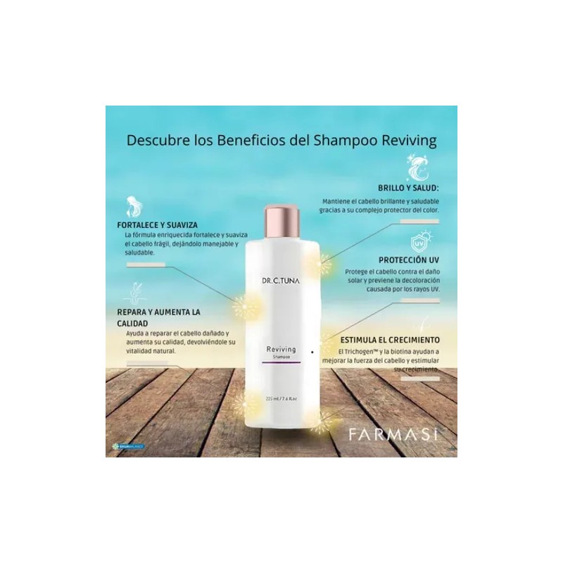 Transforma tu rutina capilar con el Shampoo Reviving Farmasi Dr. C. Tuna, diseñado para fortalecer y revitalizar el cabello débil o en proceso de caída. Su fórmula avanzada combina ingredientes naturales y activos patentados que trabajan en sinergia para mejorar la salud capilar desde la raíz hasta las puntas.