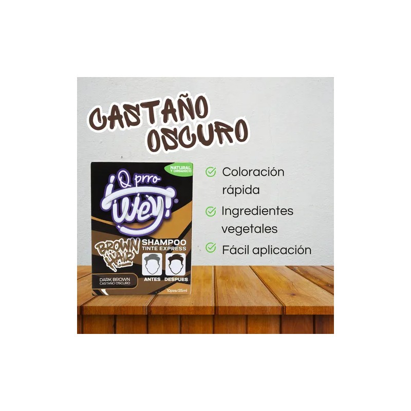 Shampoo Tinte Express Natural, Cabello Castaño Oscuro, 10pz Tono Castaño Oscuro