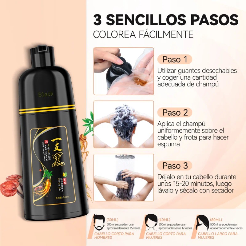 Shampoo Tinte Instantáneo Cubre Canas Natural Jengibre 500ml