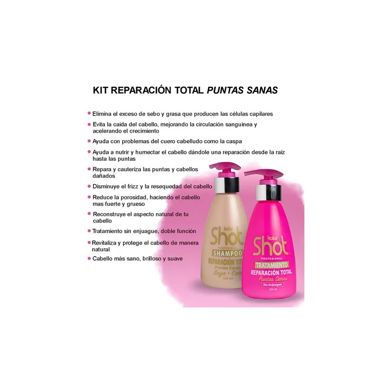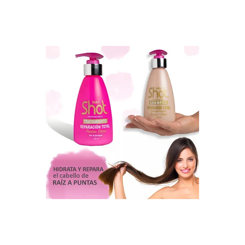 Kit de Shampoo y Tratamiento Reparación es un kit que hidrata y repara tu cabello severamente maltratado, dándole vida, brillo y suavidad.