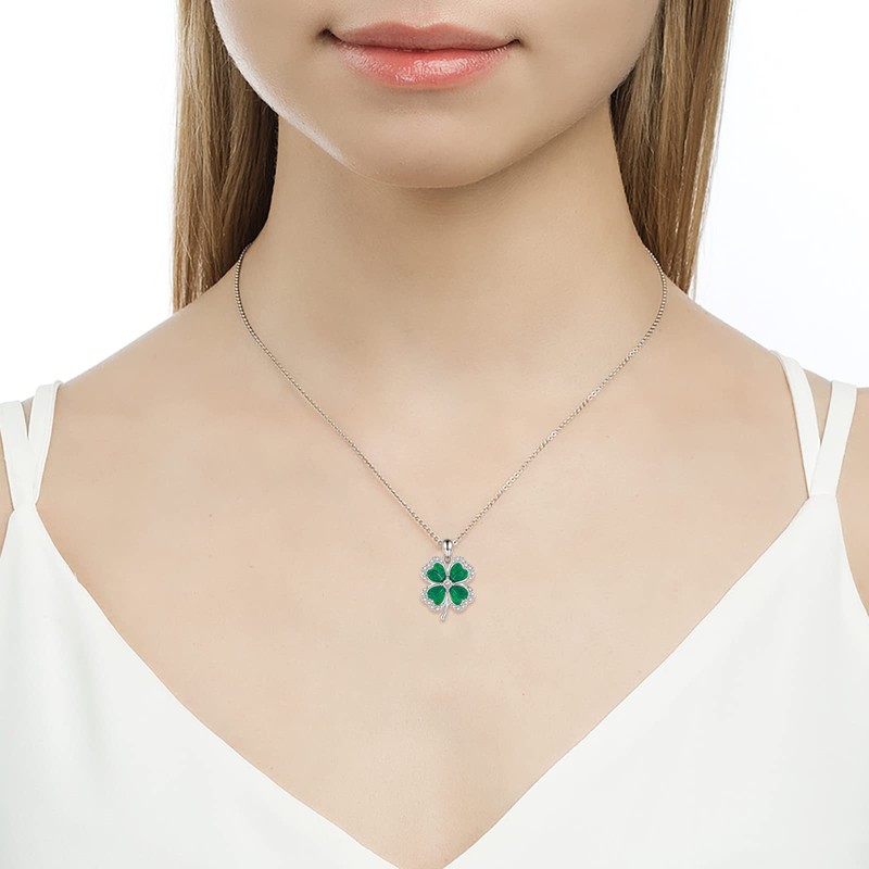 Shamrock St. Patricks Day Earrings Necklace 925 Sterling Silver Green Four Leaf Heart Clover Jewelry Gift for Women, Sterling Silver, created cubic zirconia