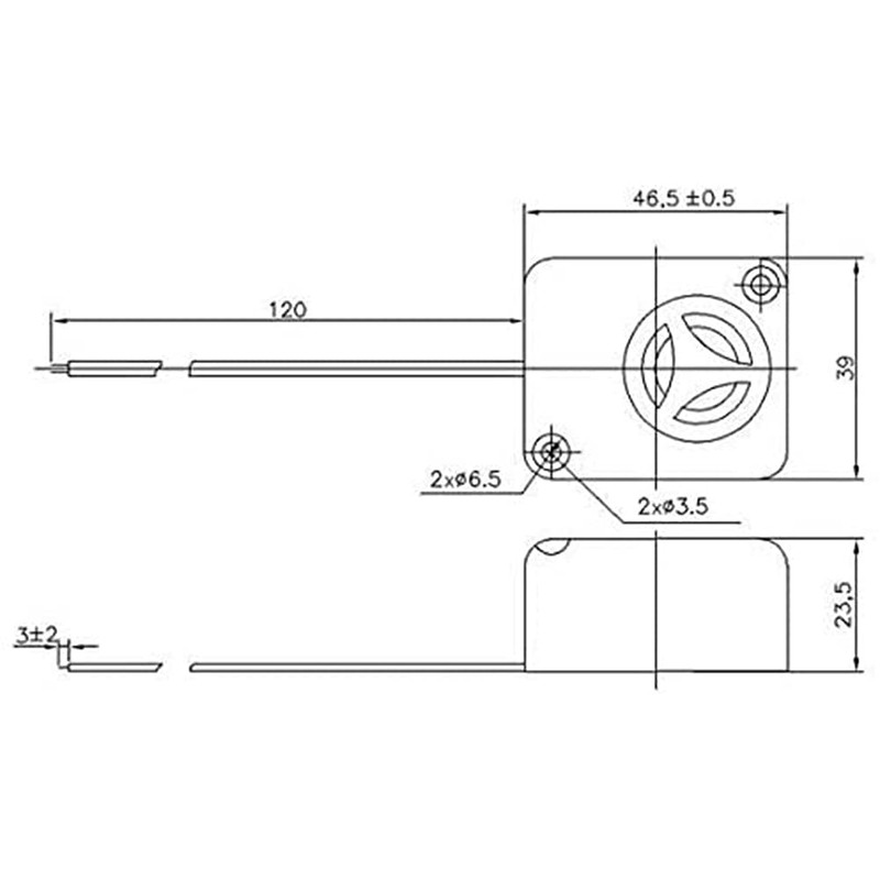 - 110dB Piezo Alarm Rated Voltage: 12VDC, Rated Current: Max 120mA. Size: 47mm x 39mm x 23.5mm (1.85in x 1.54in x 0.93in)