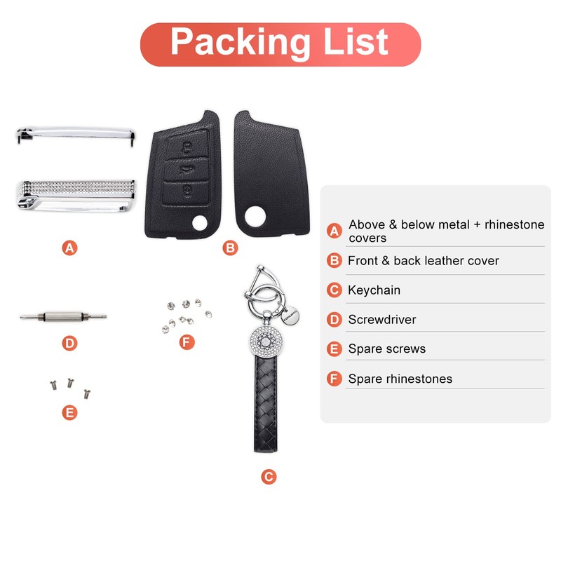- 【Material】: Made with premium aluminum alloy with leather and crystals. Make your key fob look new and premium.