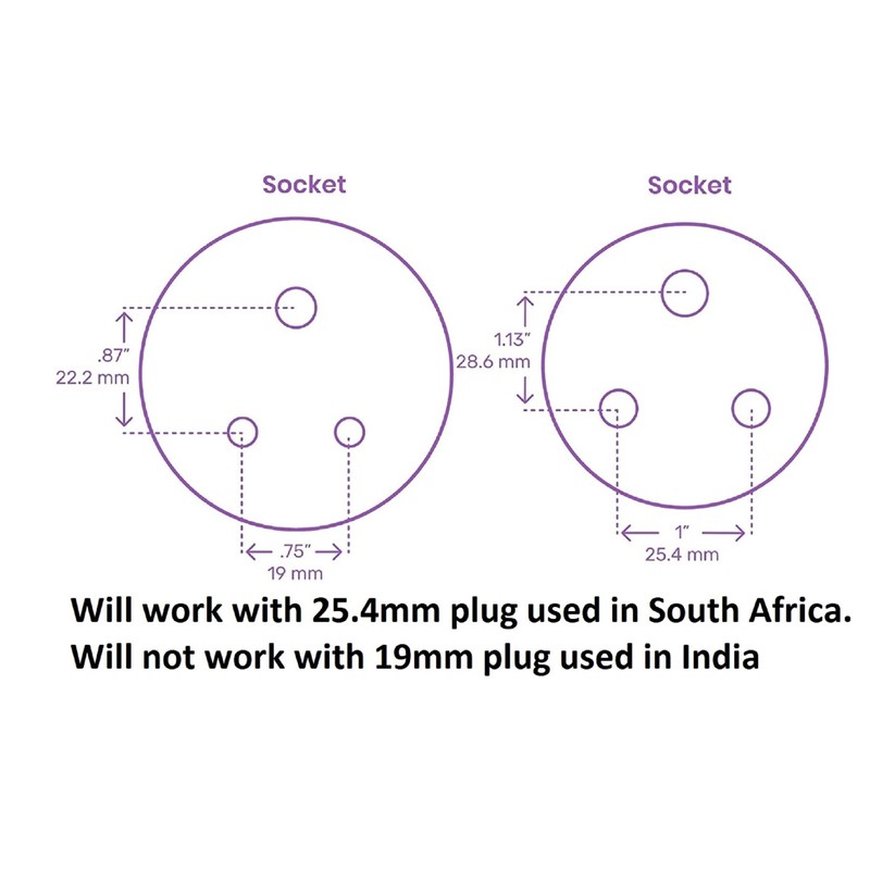 - The adaptor is for 25.4mm plug, will not work with 19mm round pin used in India - See photos