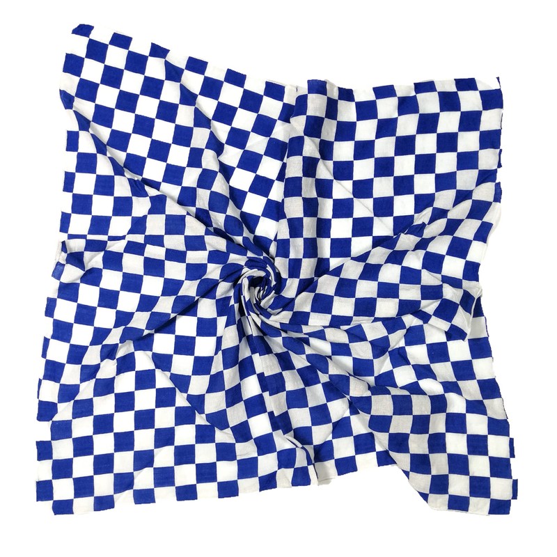 Shanlin Bufanda cuadrada de algodón unisex de 22 x 22 pulgadas, Checker-bluewhite, Estándar