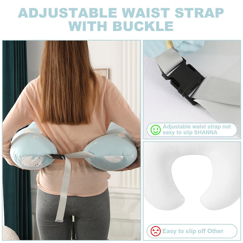A. Ergonomic Positioning: The adjustable waist strap allows the nursing pillow to securely hug your body, providing optimal support and positioning for both you and your baby. Say goodbye to constantly readjusting your nursing pillow and hello to uninterrupted bonding time with your little one.