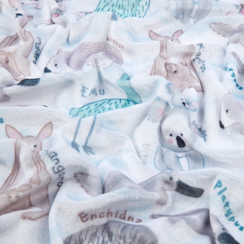 - This kid-friendly, almost watercolor style, fabric will have your little one dreaming of an outback adventure as they bundle up for naptime. This digitally printed minky has a 2.5mm pile and is perfect for Baby blankets, throw blankets, accent pillows, and comfy loungewear for boys or girls.