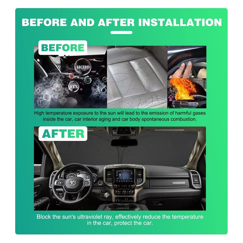 SHAOHAO For Dodge RAM 1500 2019-2021 Car Windscreen Sunshade Windscreen UV Protection for All Weather Sun & Snow