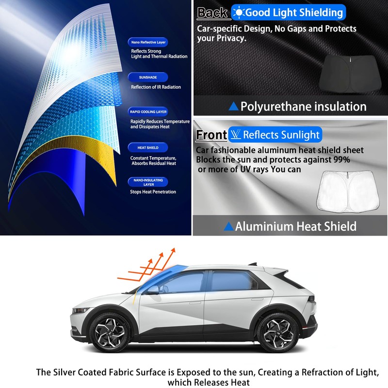 SHAOHAO SHAOHAO Kompatibel mit Ioniq 5 2021 2022 2023 2024 2025 Sonnenblende Faltbare Sonnenblende UV- und Hitzeschutz Sonnenblende Windschutzscheibe Ioniq 5 zubeh?r