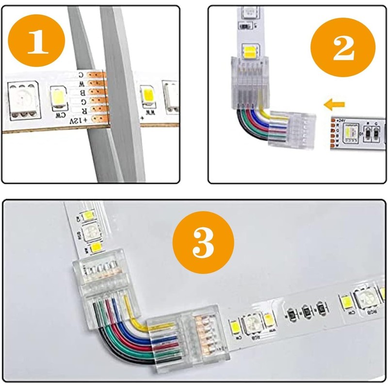 SHAOYAYAZHANG 5PCS 6PIN12MM 5050 RGBW CCT 12V 24V LED Light StripLShape LED Light Strip Connectors Waterproof or Non-Waterproof Adapter Transparent Solderless Connecto
