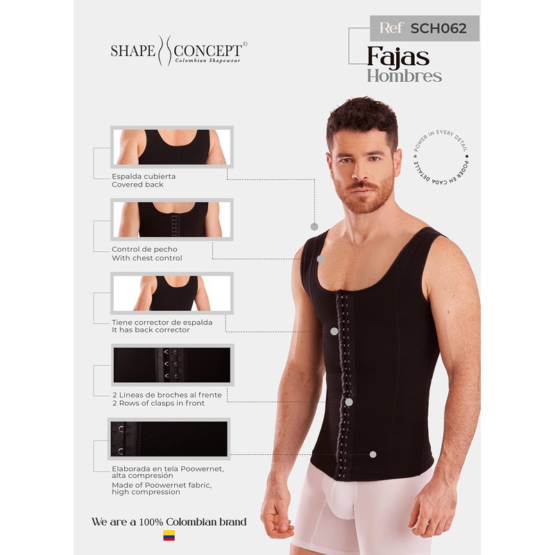 SHAPE CONCEPT 062 063 Fajas Colombianas para hombres Faja de alta compresión para hombre, Negro -, Medium