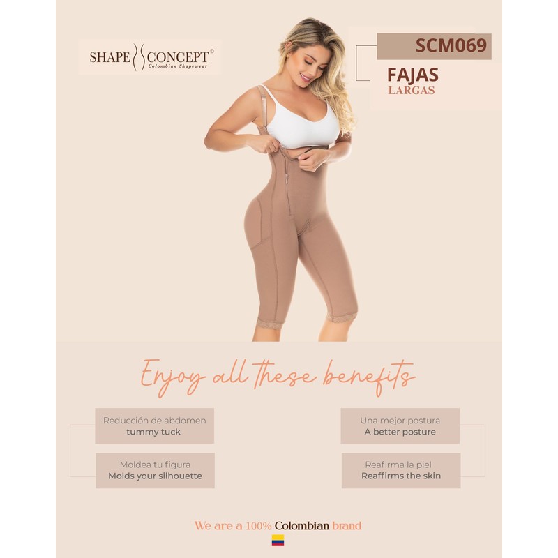 SHAPE CONCEPT Fajas Colombianas 369 Full Body Shapewear with Side Zipper Butt...