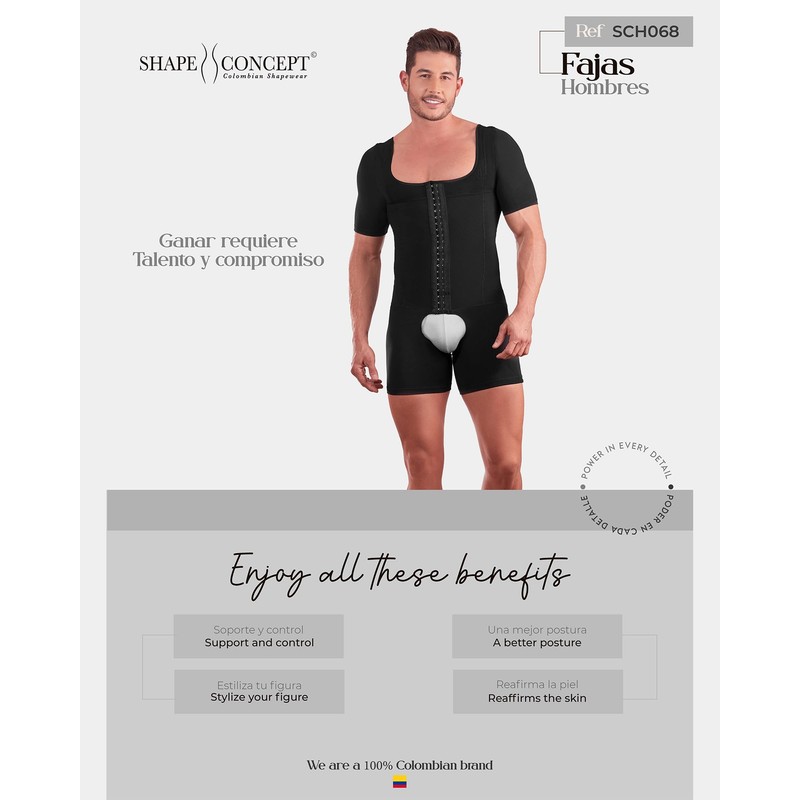 SHAPE CONCEPT Fajas para Hombres 368 High Compression Mens Shapewear Tummy Control Colombian Girdle Mens Full Body Shaper