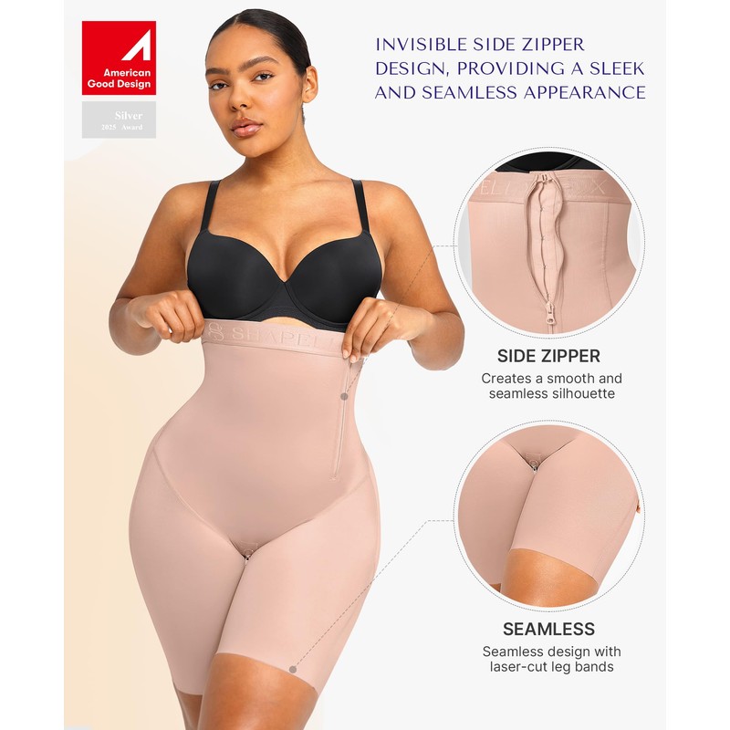 SHAPELLX Butt Lifting Shapewear Body Shaper Tummy Control Butt Lifter High Waisted Body Shaper Shapewear for Women Tummy Control Slip Higher Power Shorts (Dark Beige, Large)