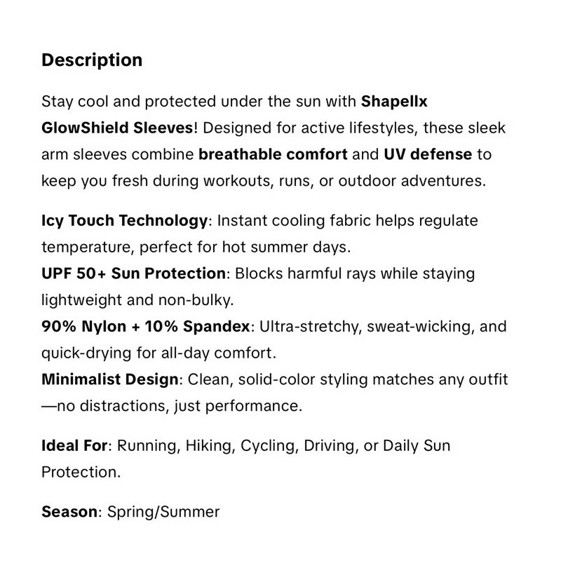 Stay cool and protected under the sun with Shapellx GlowShield Sleeves! Designed for active lifestyles, these sleek arm sleeves combine breathable comfort and UV defense to