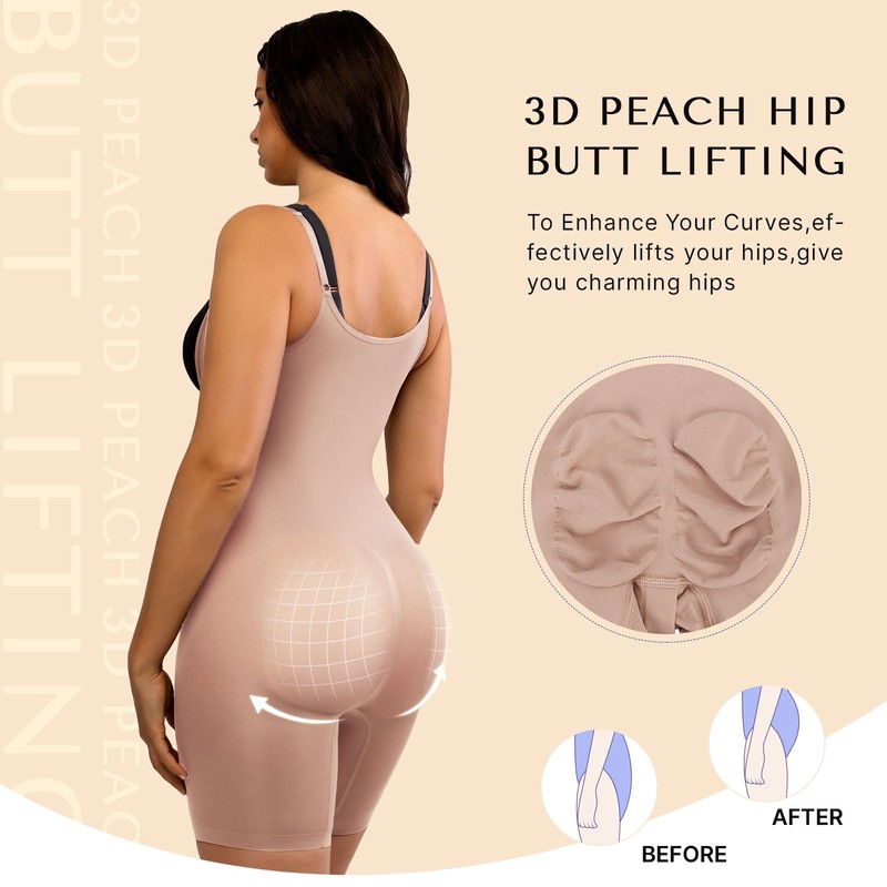 - 【U-shape Open Bust】 This shapewear design with open bust allows you to wear your own favorite bra and push up your breasts, and adjustable straps can choose the suitable size.