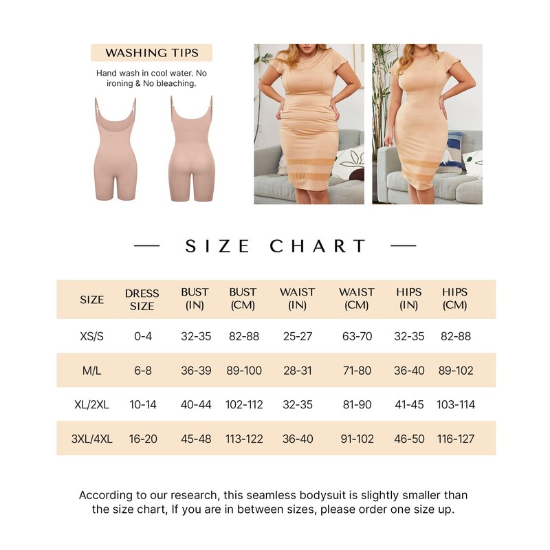 - 【Size Tips】 It is highly recommended to measure your waist and hips to find your size. The bodysuit will look tiny during 1st time try-on, but you don't need to worry about it, our shapewear is made with super stretchy fabric. According to our research, this seamless bodysuit is slightly smaller than the size chart, If you are in between sizes, please order one size up.