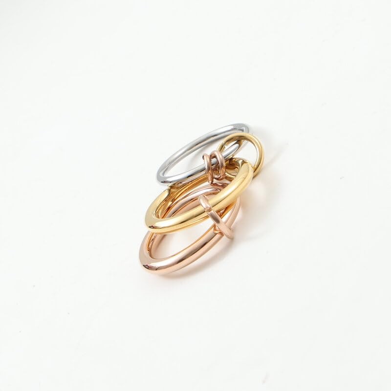 Shapes Studio Trio Linked Ring, Link Ring (Acacia), stackable Ring, Minimalism style for women, Never Tarnish (Three Band (one gold, one rose gold and one silver), 8)