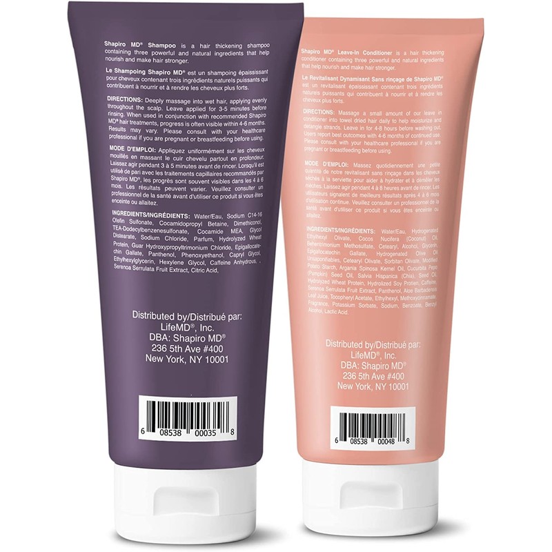 Shapiro MD Hair Revitalizing Shampoo and Leave-in Conditioner Set for Men and Women | Thickening Shampoo and Leave-in Conditioner Set for Visibly Fuller Looking Hair (1 Month Supply)