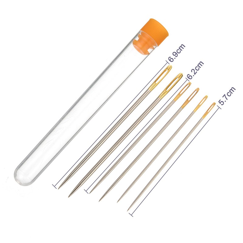 • Sewing needles: large-eye needles are in 3 sizes (6.9 cm, 6.2 cm, 5.7 cm), 2 pieces for each size, they are packed in a clear plastic bottle, which is easy to store and carry, won't hurt your hands accidentally