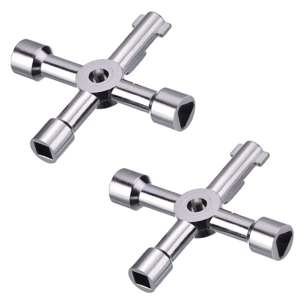Shappy 2 Pack Electric Cabinet Keys Gas Meter Keys Utility 4-Way Keys for Multi-application (Silver)