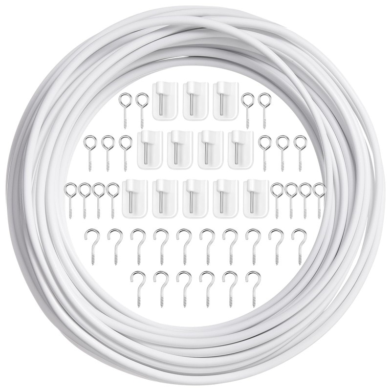 Shappy Curtain Wire with Self-Adhesive Hooks, Hooks and Eyes for Net Curtain Rod (12 Meters, 16 Pairs)