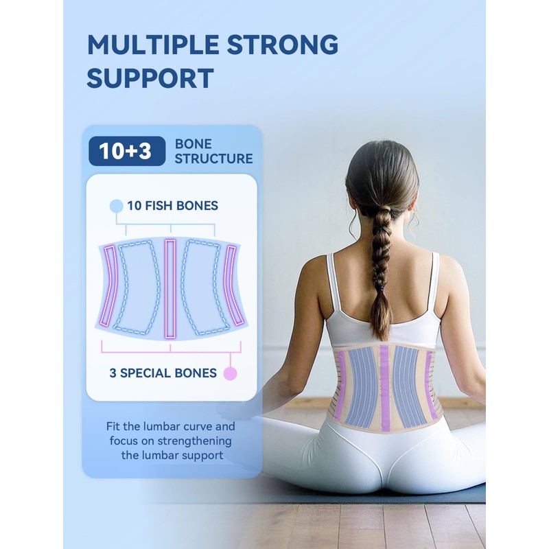 - Fits Your Body - This back support belt has 10 solid fishbones and 3 special fishbones on the back. The unique structure fits the curve of the back better, significantly enhancing the support, allowing you to enjoy beauty and comfort. And the elastic adhesive straps on both sides are suitable for all body shapes, more comfortable and fit, this postpartum girdle can improve posture and prevent muscle strain and has strong stability and is very suitable for various scenarios