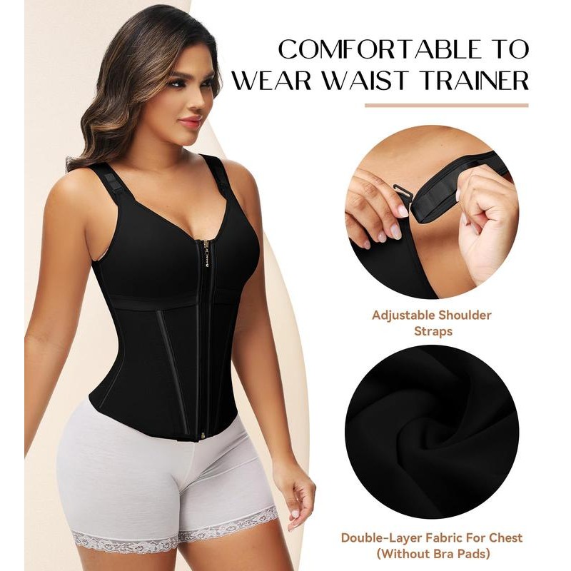 SHAPSHE Waist Shapewear for Women with Bra Tummy Control Girdle Workout Shapewear with Adjustable Shoulder Strap:_Black_Medium
