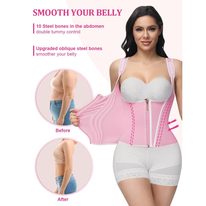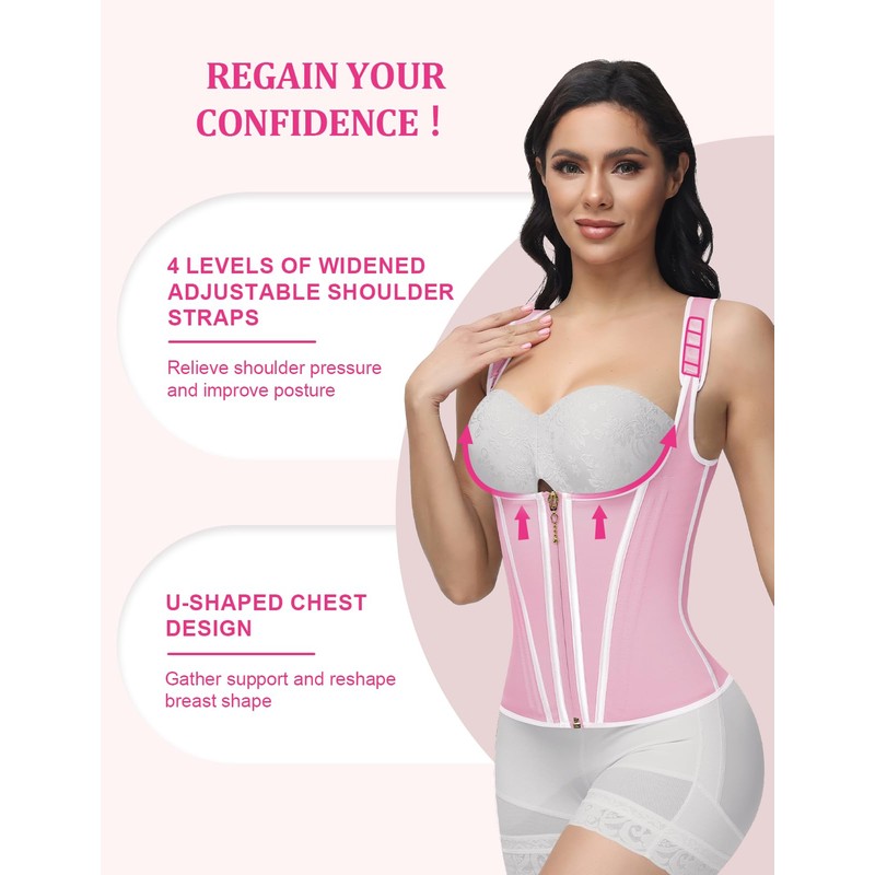 - Hourglass Waistline Is Not A Dream: The front chest of the corset waist trainer adopts a U-shaped design to make your chest straight, and 17 elastic memory steel bones surround it to enhance the support of the waist, back, and abdomen in all directions