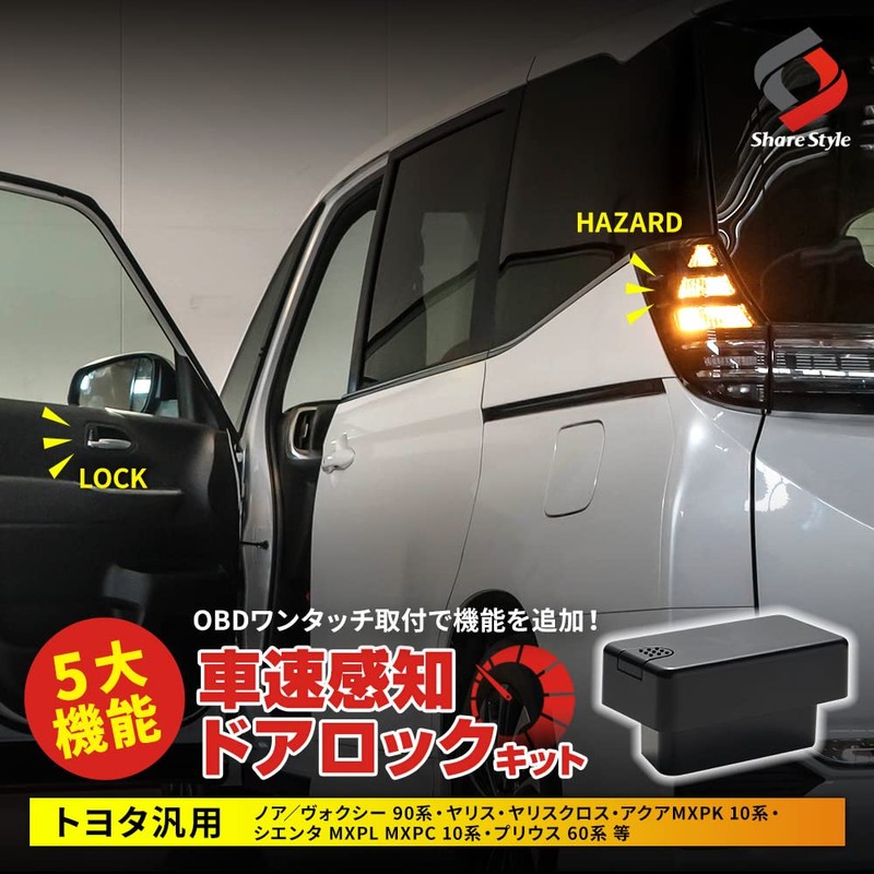 [Share Style] Toyota General Purpose Noah Voxy 90 Series Prius 60 Series Yaris Yaris Cross Aqua Sienta, Etc., Car Speed Door Lock Kit, OBD