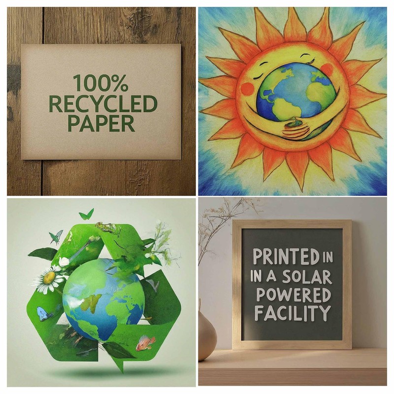• MADE IN THE USA - Our greeting cards are printed on 100% recycled paper using a solar-powered facility in the USA.