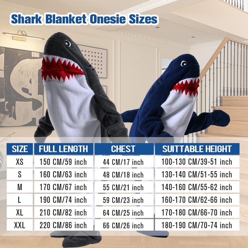 - Updated detailed design: To make wearing more comfortable and comfortable, we have changed the shark onesie overall and widened the chest and leg length, so you can move more freely. The hand openings on the sleeves make it easier to operate mobile phones and tablets. To highlight the three-dimensional effect of the shark, we have attached a hidden button to the opening of the hair corner.